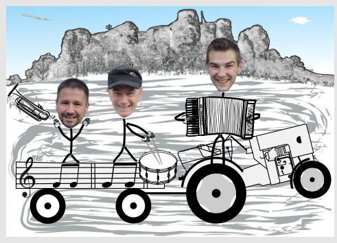 UND SO GING ES LOS:Wir schreiben den Juni 2013…Oldtimertreffen auf dem Dorf um die Ecke. Aufgeregt sitzen wir - noch ohne Martin - mit zwei Akkordeons auf unserem alten Eicher-Traktor und spielen auf. Erste Gage: Eine Maß Bier!!! und viel Applaus…………….